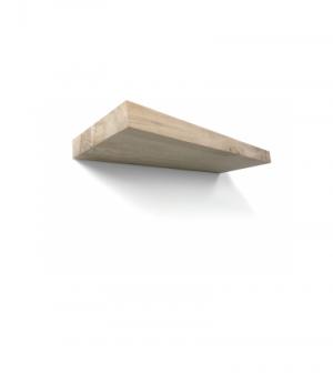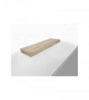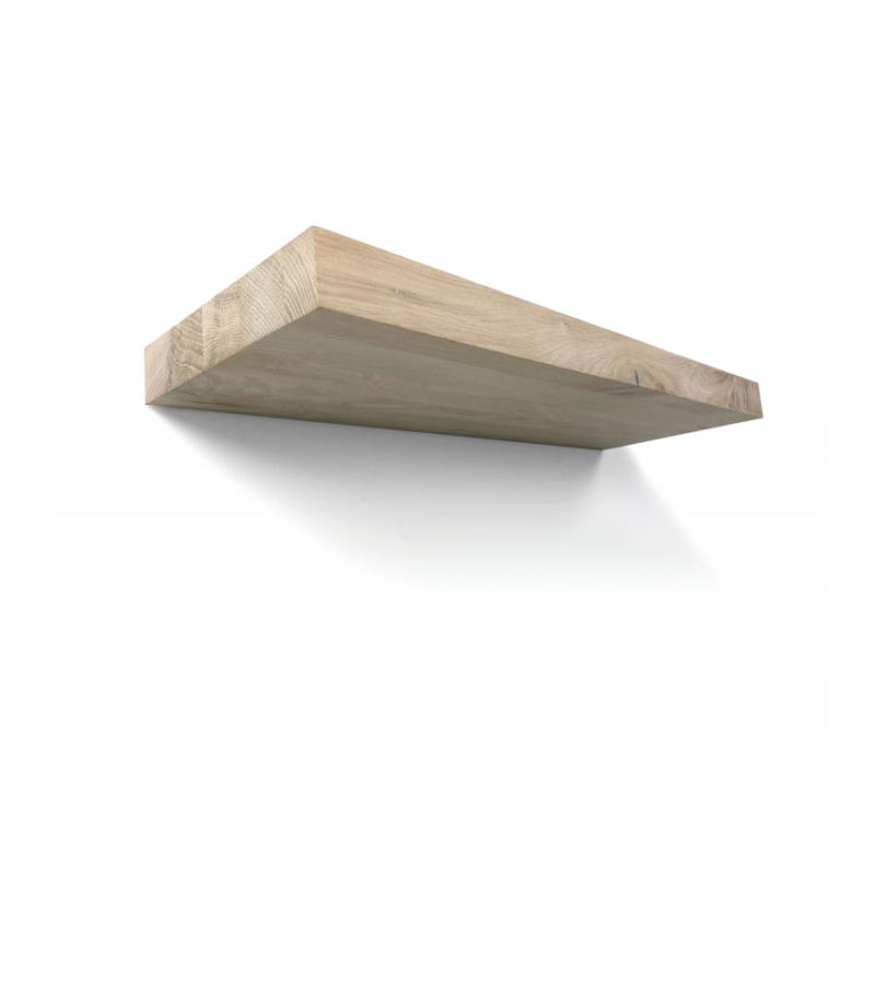 Zwevende gladschuurde massieve wandplank van eikenhout met recht gezaagde afwerking aan het vooraanzicht.