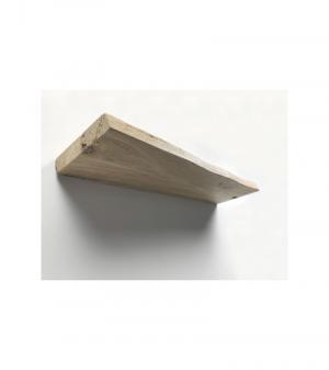 Deze zwevende wandplank van oud eikenhout kent een boomstamvorm afwerking. Aan de voorzijde van de plank zie je nog goed waar de schors heeft gezeten en de golvende vorm hiervan is nog zichtbaar. Dit detail geeft een levendige, landelijke uitstraling. Oud eikenhout vertoont meer groeven dan massief eiken, het is een geleefde plank. Dit hout krijgt een nieuw leven door het te gebruiken voor de zwevende wandplank van oud eiken.