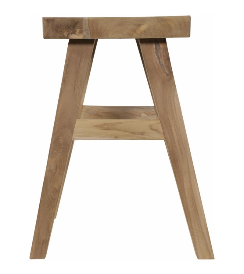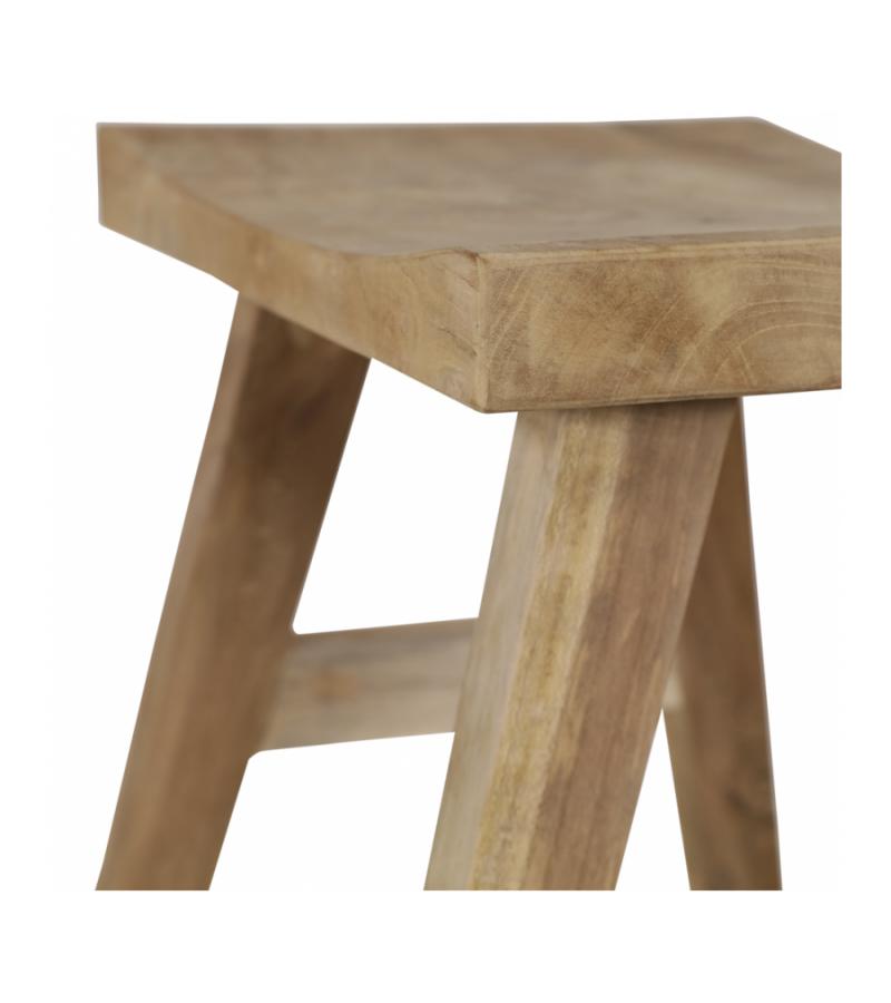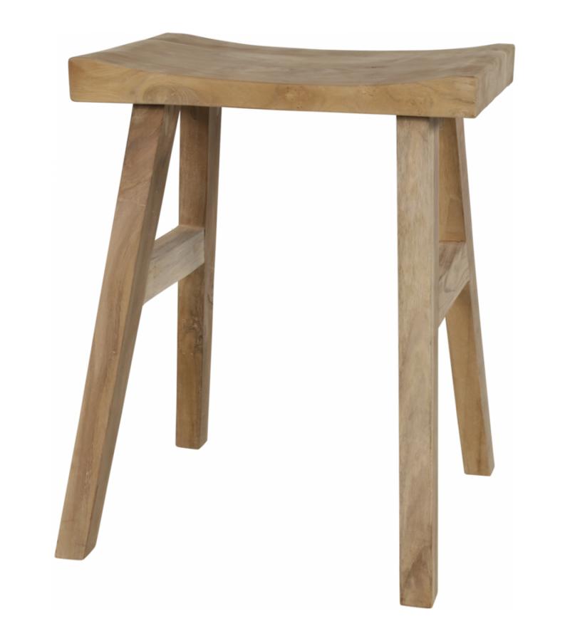 Dit krukje is uiteraard praktisch te gebruiken om een extra zitplaats binnen of buiten te creëren wanneer nodig. Maar met de juiste accessoires maakt u er tevens een echte eyecatcher van in uw inrichting! Een schapenvachtje over de zitting draperen, erop een grote schaal met kaarsen of vaasjes en u kunt met behulp van dit krukje een geweldig stilleven creëren waar u ieder seizoen iets anders van maakt. De mogelijkheden zijn eindeloos om het krukje als decoratiestuk te gebruiken. En heeft u dan toch die extra zitplaats nodig, dan pakt u het krukje er gewoon even bij! Het krukje is volledig gemaakt van teakhout. Dit natuurproduct kan gaan werken onder verschillende omstandigheden waardoor onregelmatigheden in het hout kunnen voorkomen. Dit is niet te voorkomen maar geeft het krukje wel een unieke uitstraling; geen twee krukjes zullen hetzelfde zijn!
