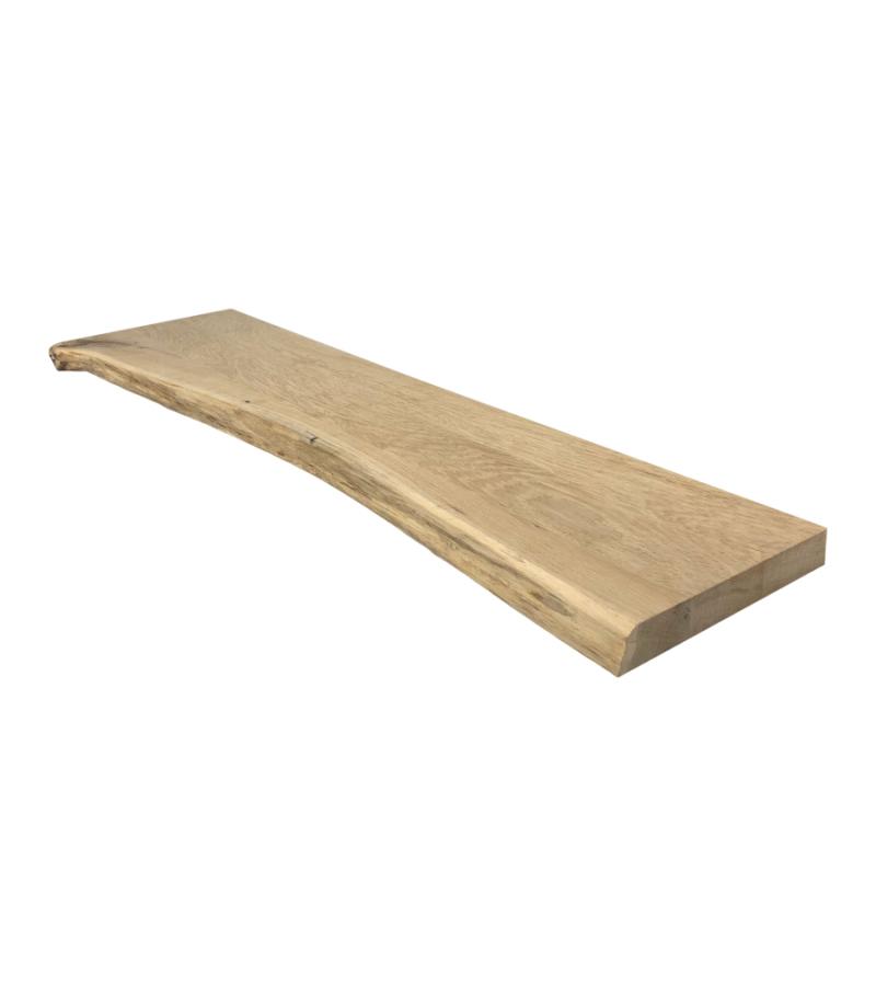 Deze gladgeschuurde massief eikenhouten plank is als een boomstam, aan de voorzijde van de plank zie je nog goed waar de schors heeft gezeten en de vorm hiervan is nog zichtbaar. Dit detail geeft een levendige, landelijke uitstraling.