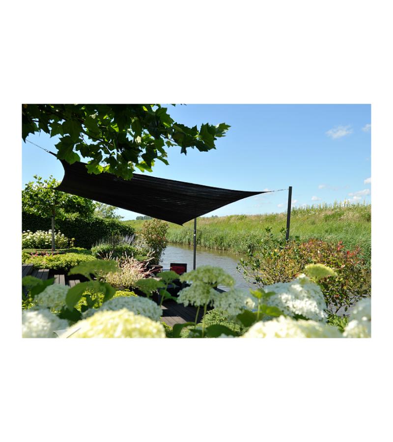 De vierkante Coolfit schaduwdoek antraciet is een zonwering die u, op de hete zomerdagen, van verkoeling kan voorzien. Het doek is gemaakt van geknoopt HDPE dat u voor 90 tot 95% beschermt tegen schadelijke UV straling. Het doek is semi permanent te gebruiken. Dat wil zeggen dat u het schaduwdoek van april tot en met september zonder problemen buiten kunt laten hangen. Het schaduwdoek is schimmelwerend. Dat betekent dat u het doek in regen en wind gewoon kunt laten hangen, mits deze goed is bevestigd. Het schaduwdoek wordt geleverd exclusief bevestigingsmaterialen. Kijk op Tuinexpress.nl voor de bevestigingsmaterialen die bij deze unieke doeken horen. Deze vierkante Coolfit schaduwdoek is verkrijgbaar in verschillende kleuren en afmetingen. Combineer dit doek ook eens met andere vierkante – en driehoekige schaduwdoeken voor een ruimtelijk effect in uw tuin!