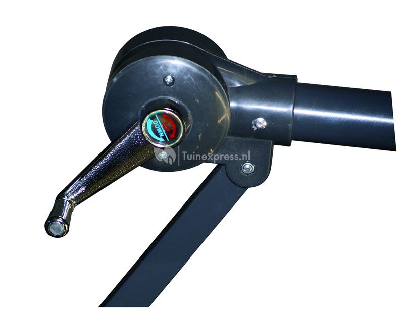 • Voorzien van handige molen, voor het eenvoudig uit- en inklappen van de parasol
