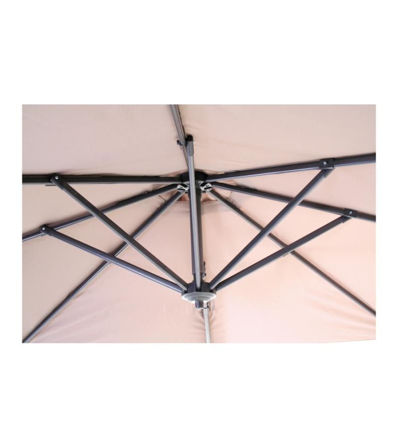 Zweefparasol Honolulu onderscheid zich van andere parasols doordat deze parasol 360° draaibaar is en vast is te zetten in 6 standen waardoor u in meer of mindere mate een zonnescherm kunt creëren waardoor het gewenste briesje u ook kan bereiken.