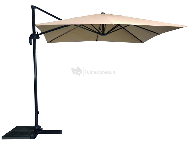 De parasol staat garant voor een lange levensduur door het stevige, aluminium frame en de acht aluminium baleinen. Wel wordt aangeraden om de parasol te beschermen met de meegeleverde parasolhoes wanneer u de parasol niet in gebruik heeft. De kruisvoet van de parasol wordt meegeleverd maar deze dient nog wel verzwaard te worden met twee tot vier tegels, zo blijft de parasol goed en stevig staan. Geniet zelfs op de warmste zomerdagen in uw tuin onder de prachtige zweefparasol Libra 250 x 250 cm ecru!